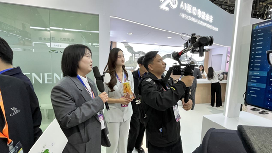 開展首日,展區眾多專業訪客蒞臨,與來自全球的能源企業代表、行業專家、技術工程師及媒體記者展開了深度交流。通過三維可視化大屏、AI智慧電站解決方案實時互動等環節,岳能科技動態展示了其在風電、光伏、儲能等領域的數智化管控能力,特別是其“新能源+AI”的前沿技術應用,成為現場熱議的話題。