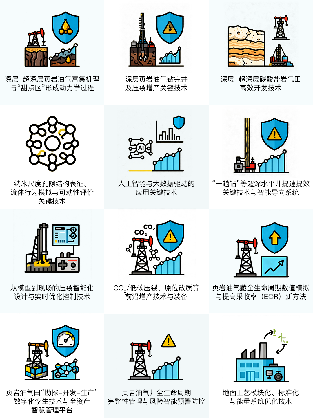3. 深層頁(yè)巖油氣鉆完井及壓裂增產(chǎn)關(guān)鍵技術(shù);
