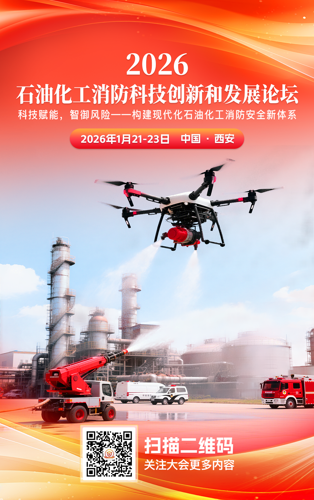 隨著我國石油化工產業的持續快速發展,產業規模不斷擴大,工藝裝置日趨大型化、復雜化,儲存的危險化學品數量巨大,其固有的高溫高壓、易燃易爆、有毒有害等特性,使得石化行業的火災爆炸及泄漏風險始終居高不下。為深入貫徹落實黨中央、國務院關于安全生產和應急管理的系列重要決策部署,如《“十四五”國家應急體系規劃》、《“十四五”國家消防工作規劃》、《危險化學品安全生產“十四五”規劃》等文件精神,推動石化消防領域科技創新,交流分享最新技術成果與實踐經驗,提升我國石油化工行業本質安全水平和應急救援能力,與此同時,以大數據、人工智能、物聯網、5G通信等為代表的第四次工業革命技術浪潮正深刻改變著社會生產生活方式,也為石化消防科技的創新與升級提供了歷史性機遇。為了提高應急救援隊伍專業化管理水平,加快石油化工消防與應急關鍵技術裝備研究攻關、實現我國石油化工消防與應急能力高質量發展。經研究,定于2026年1月21-23日在西安市召開“2026石油化工消防科技創新和發展論壇”。