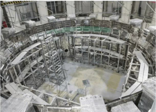 近日,中國緊湊型聚變能實驗裝置BEST項目的關(guān)鍵部件——底部冷屏側(cè)環(huán)體成功落位安裝。該部件直徑約11.4米,高度超4.5米,重量達10噸,其核心功能是隔絕主機低溫部件與外部杜瓦之間的熱傳導(dǎo)和熱輻射,對維持裝置超導(dǎo)環(huán)境與運行安全具有關(guān)鍵作用。