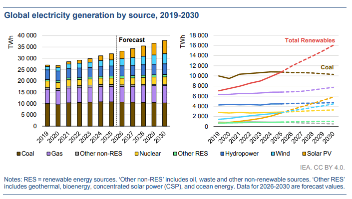 國際能源署(IEA)6日發布《2026年電力市場展望》,預測在2026-2030年,全球發電量將達到多個新的里程碑。