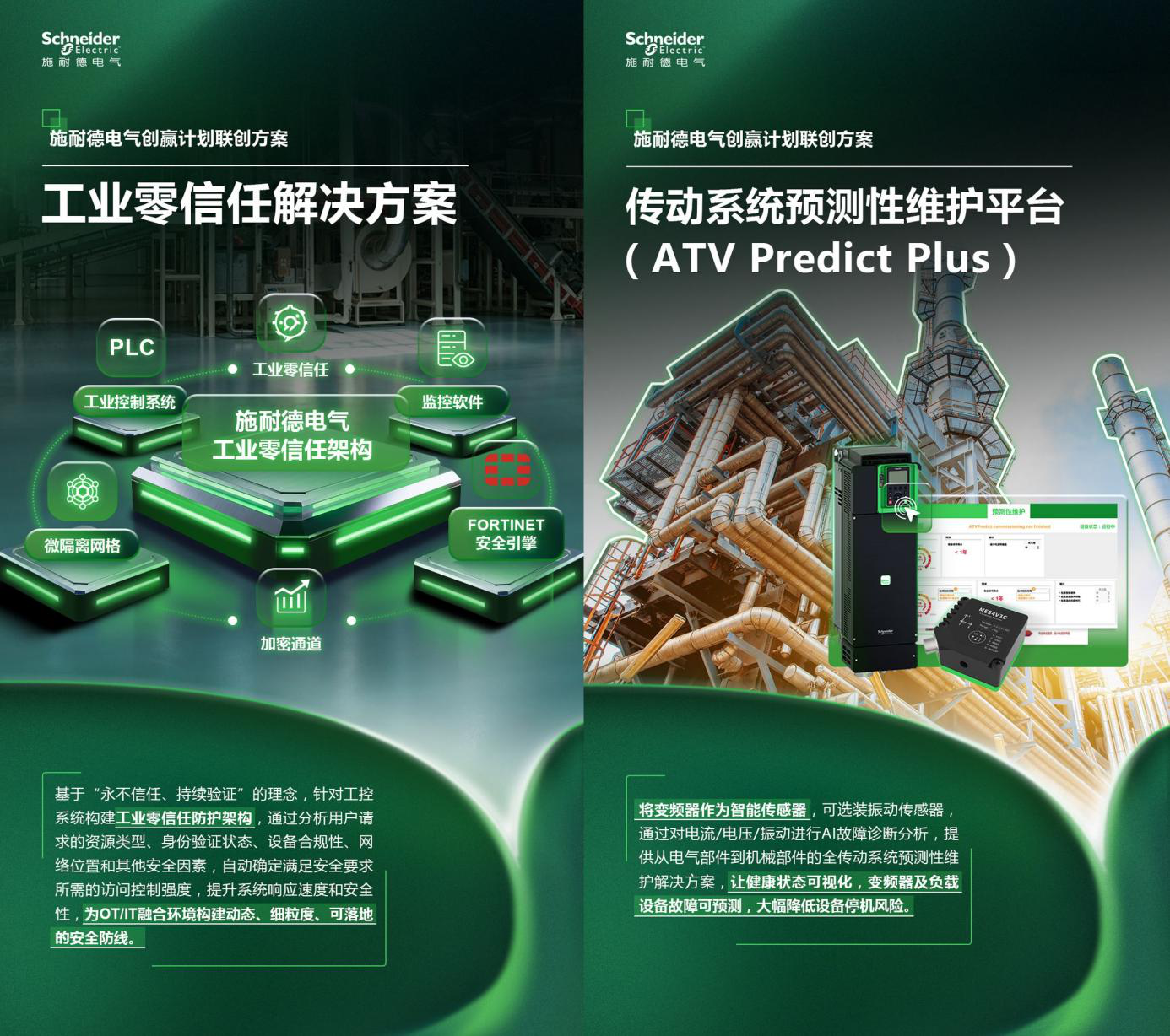 其中,有兩項方案圍繞運維模式與系統協同進行深化,它們分別是“工業零信任解決方案”和“傳動系統預測性維護平臺(ATV Predict Plus)”,合作伙伴為防特網和輝度智能,目前已落地化工、冶金、市政水等行業。